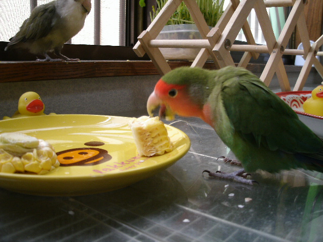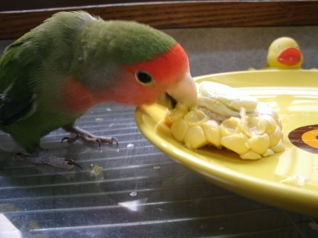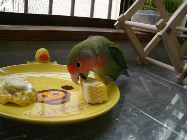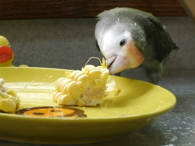今年は美味しいとうもろこしを頂く機会が何回かあって(じーさん宛てに届くんですけどー)、鮮度がいいうちにだいたい近所のばーさんの友達に配るとか、すぐに塩茹でしちゃうとかですが、ばーさんは何も言わなくても鳥さん用に生のまま取っといてくれてました。