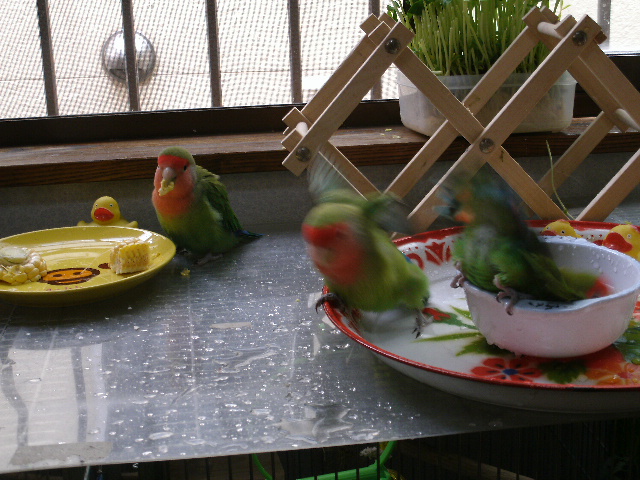 やはり30度超えた気温で放鳥しますとはしゃぐ鳥さんは