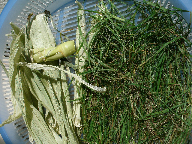 そして刈った草は・・・ちょっと腰のない柔らかめの草なのでアレですが、鳥あえず干して枯れ草にして鳥さんようの破壊おもちゃ用に使おうかとーー。