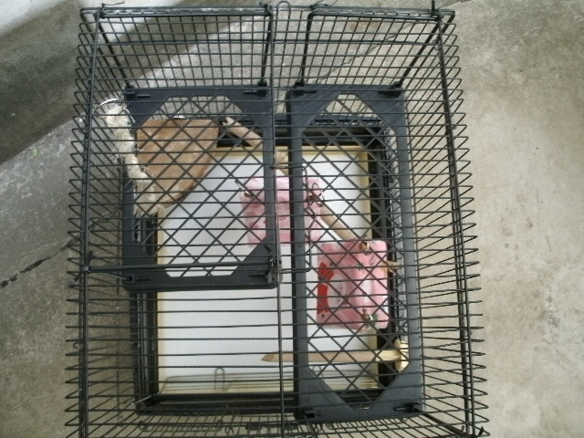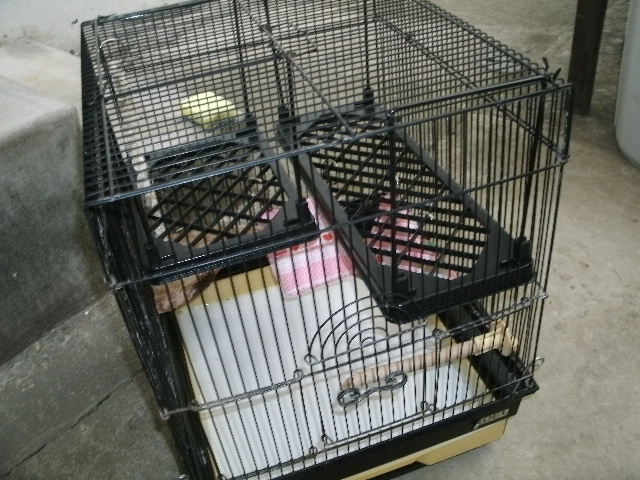 ケージの止まり木の下段上段を一軒家の1階2階にたとえますと、そろそろハンデのある鳥さんは1階に住んでもらおうかな、という事です。
