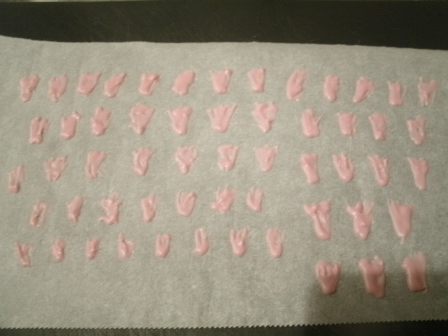 さあ、あとは盛り盛りもりつけだよ~~、キレイなカーネーションにな~れ~♪って、デコペンで描いた花びらを箸かピンセットで生クリーム部分にのっけていったら完成だぜ~