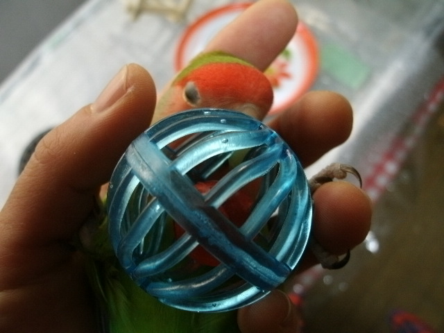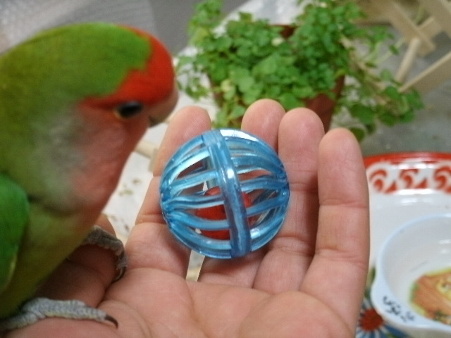 ダ〇ソーさんの中がプラ鈴のボール。と、迷惑そうなPINちゃん