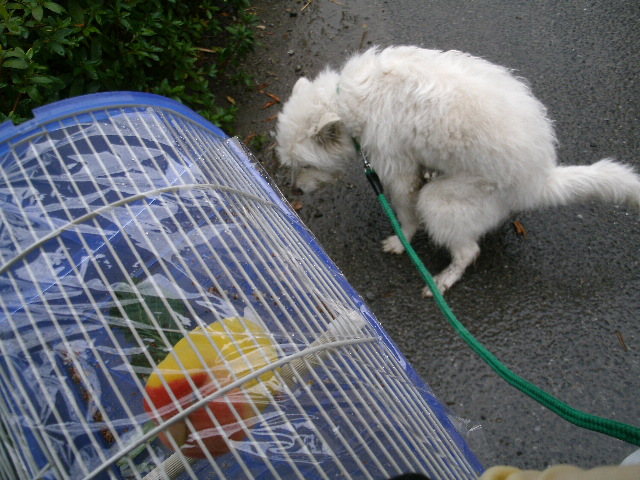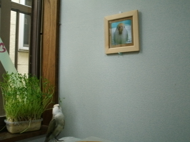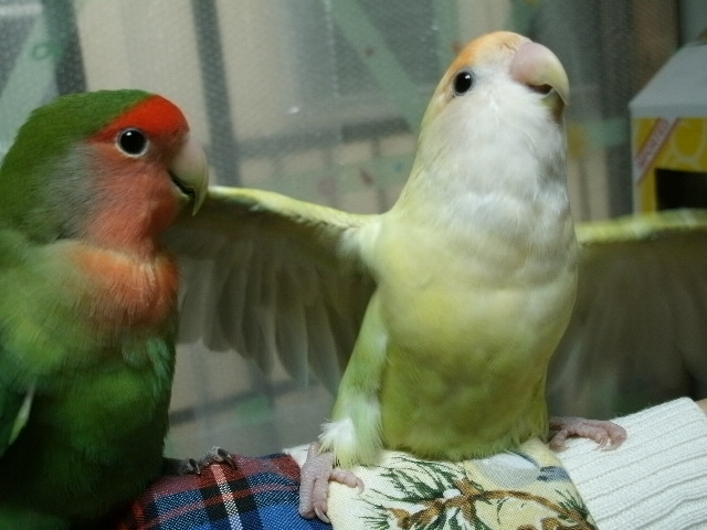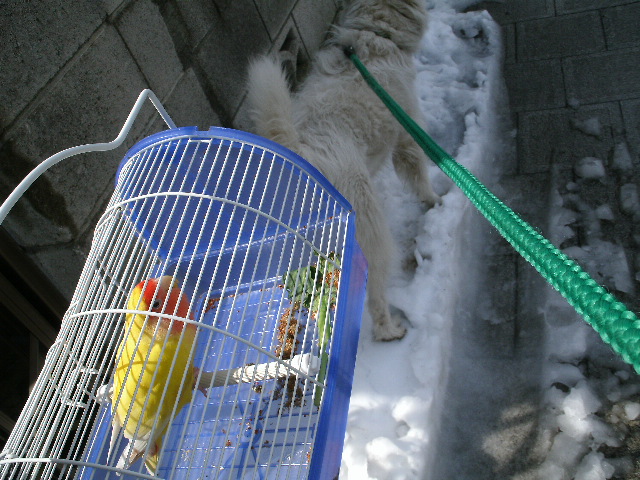天使さんを連れてきてくれたイケメンズインコさんのポポちゃんと、ポポちゃんのかのじょ・・・ではなく下僕のEさんから