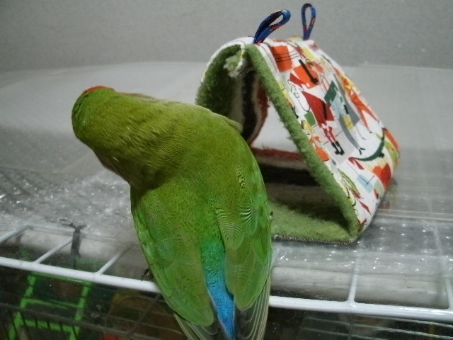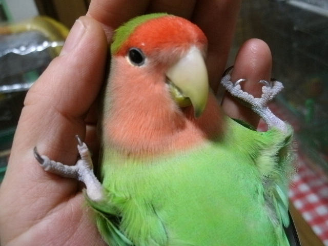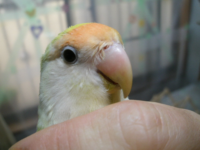 ぴーちゃん、ここんとことてもご機嫌がよかったので、ケージに帰るときにすんなりとおばさんの腕タクに乗って
