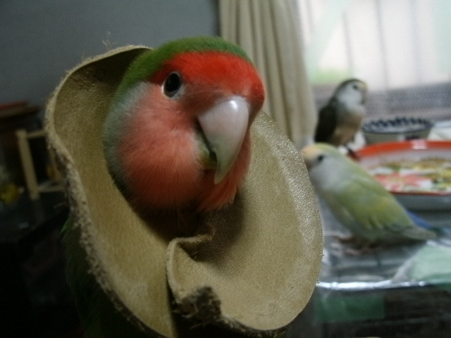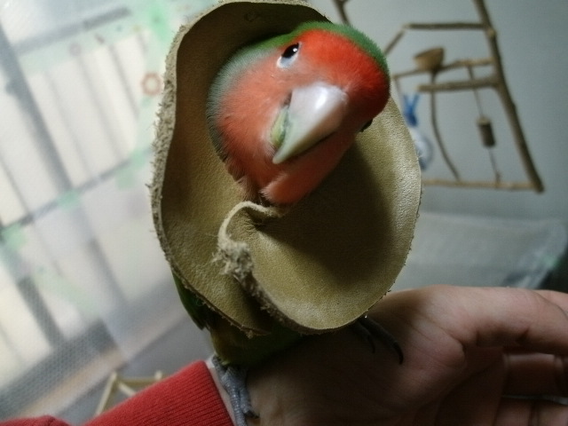 む、このお人形を抱いたインコさんは・・・(と、PINちゃん隠し撮り