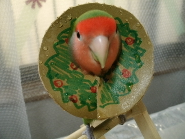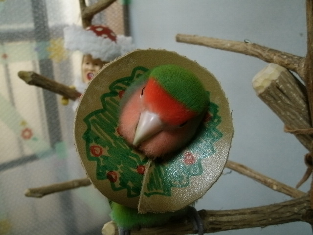ぴーちゃんはそのまんまクリスマスカラーなので何もしなくてもいんですけどー、やったらやったで可愛さ倍増よ