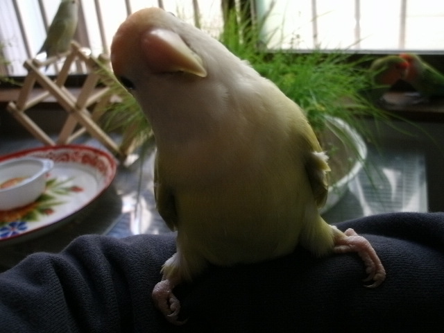 (なに言ってんの?アホ??)あいや~~っ、なかなか指に乗る鳥さんがいないもんでねぇ、ちょっとコーフンしちゃったんですけど、アンタまさかげんきじゃないわよねっ?(いまだにげんきとPINちゃんの見分けが難しい