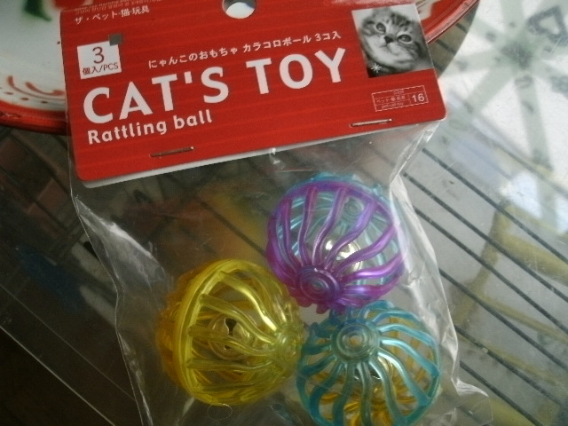先代のボールはすっかり痛めつけられてしまったし(げんきが水ン中投げ込むから鈴が錆びるのよね~~)、ボール遊びが好きだったげんきは最近じゃー女子さんのケージにばかり張り付いつくばかり、女子さんは引きこもりをするばかりなので少しはおもてでで遊びなさいよ~~!とボールで誘って・・・・