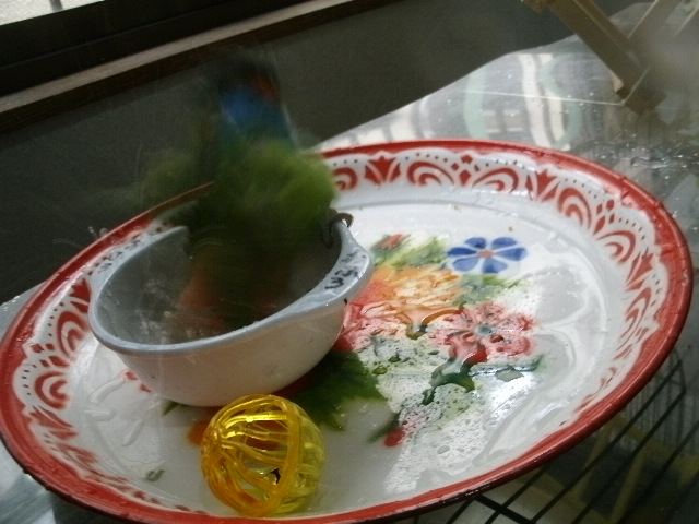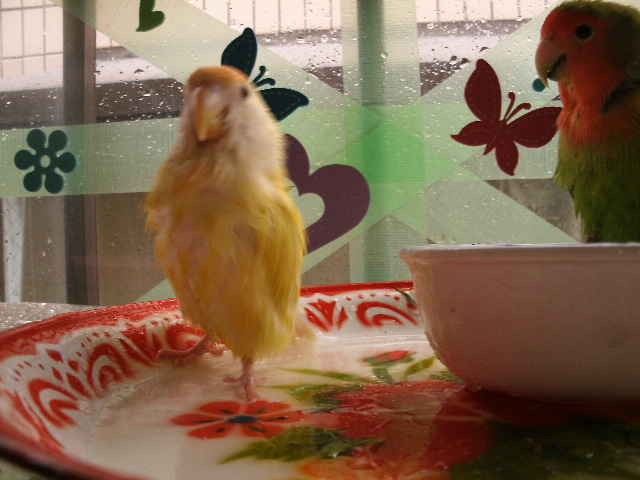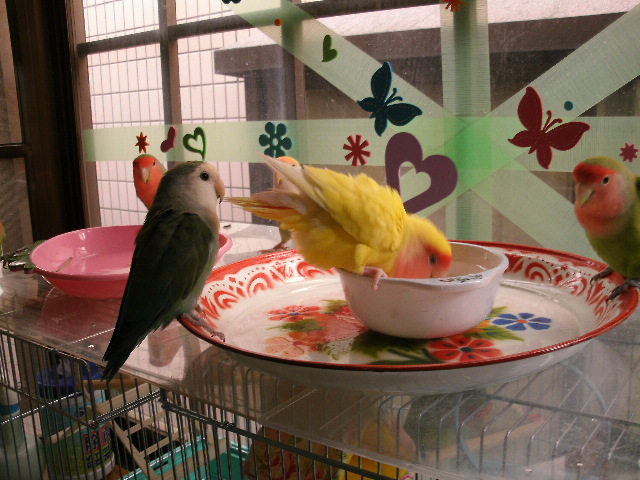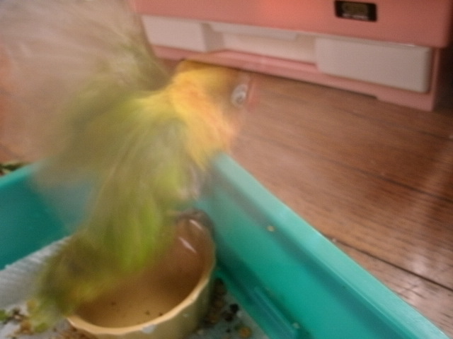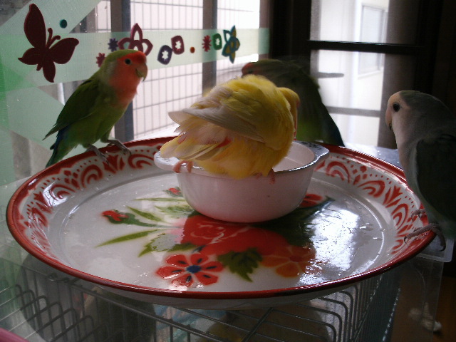 まるこさんとそらちゃんのお風呂が終わると次の順番待ちの鳥さんが・・・