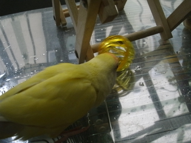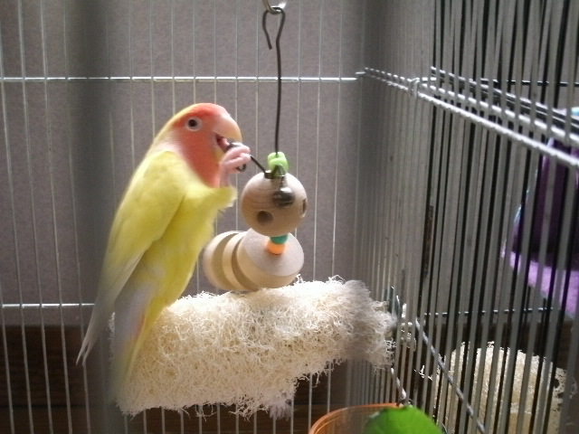 鳥さんもその時々でおもちゃのマイブームがあんのよね~。いつまでも同じもので遊ぶとは限らないのだな。