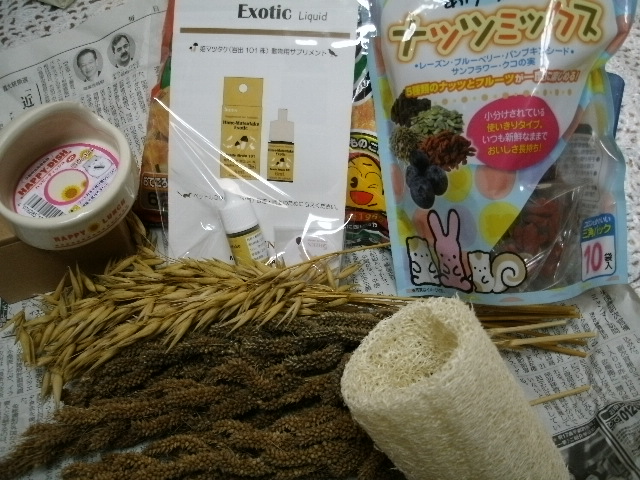 kaoryさんちのハクちゃんのケージにはサイズが合わなかったようで、「みるくさんにでも~~」って事でいただいたんですが、なんだかおすぎさんに使えそうなのでーー