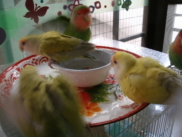 鳥さん社会にはいろいろと譲れない条件があるらしく、最後まで独占して風呂入ってましたね~~まるこさんーー。(横入りしようとするのはげんきだな)