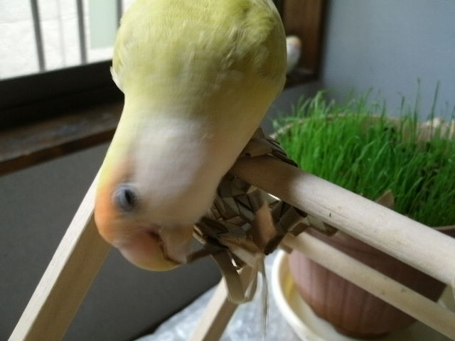 ぴーちゃん草おもちゃの遊び方教えるね、まず噛むんだよっ