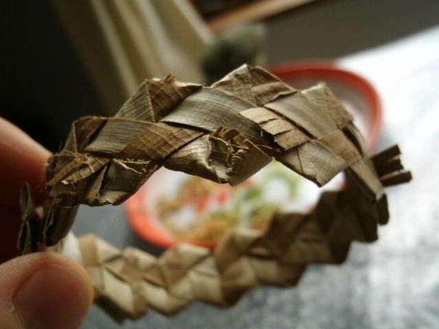 まめちゃんはなかなか噛み切れないシュレッダーさんを上手に細~く切ってお腰に挿すのがブームなようで~~