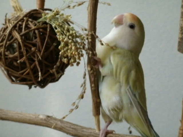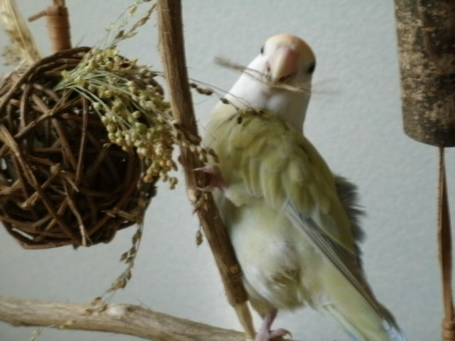 だーちゃんも例に漏れずおもちゃへのパッションがあまりないおコなんですが、とととととりあえず特大ピロピロ草おもちゃに粟穂くくりつけてぜひそちらに気をそらしてください作戦にしときました。