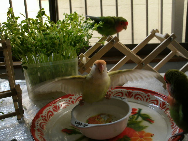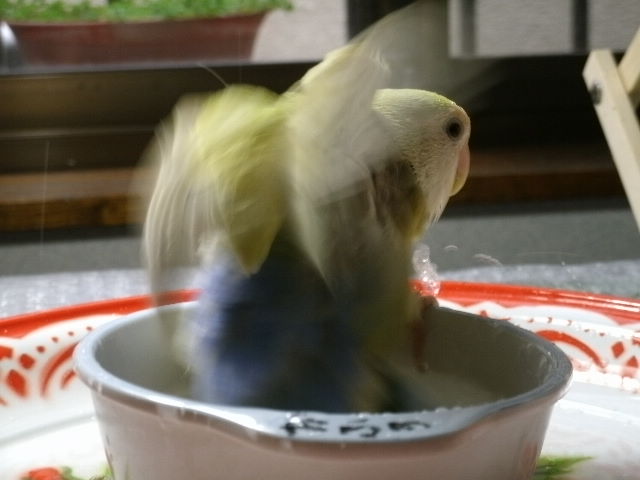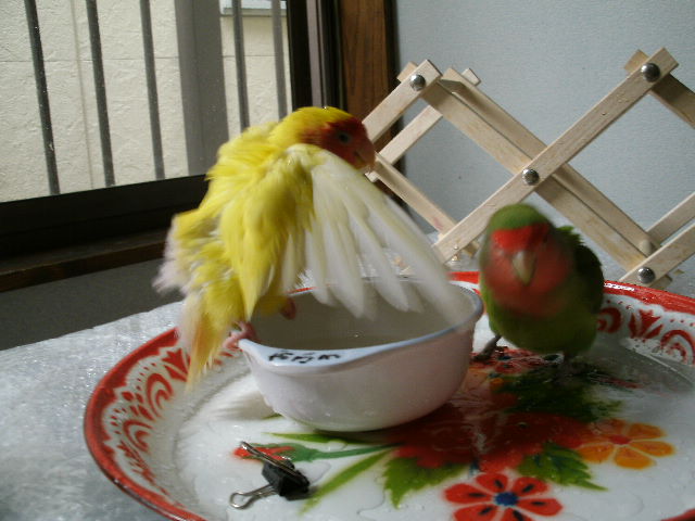 換羽もあり、日差しもだんだん強くなりでみなさん水浴びに忙しくなったり