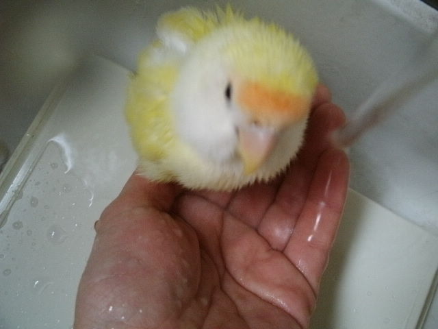 換羽や乾燥でカユカユだったりもするんですかね。ええ、やや拷問的手風呂も耐えますんで、きれいにお着替えしてね~♪