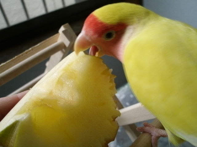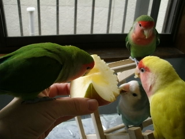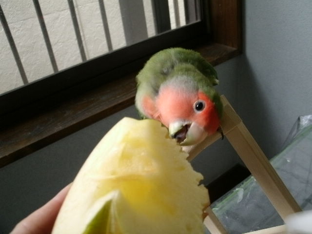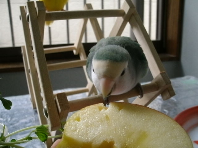 なんだろね~、ペレットに入ってる乾燥リンゴは残してますけど生リンゴはお好きなようで~(たぶん甘い汁が好きなんだろうな)