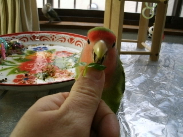 毎日の鳥さんのお野菜は小松菜おひとりさまにつき1枚となっちょります。