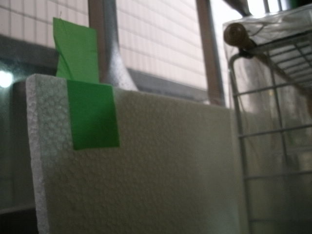 そして窓に接してるハウチュの保温効果を高めるために、窓に発泡スチロールのボードまで