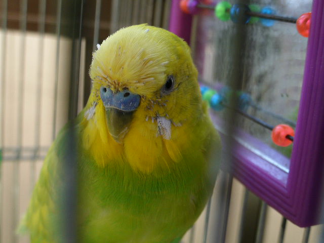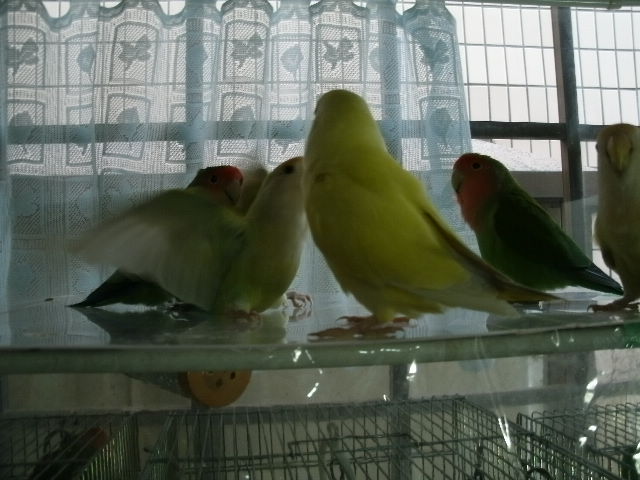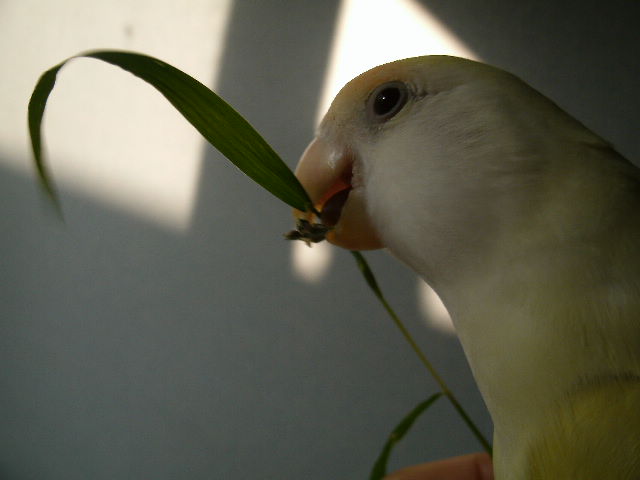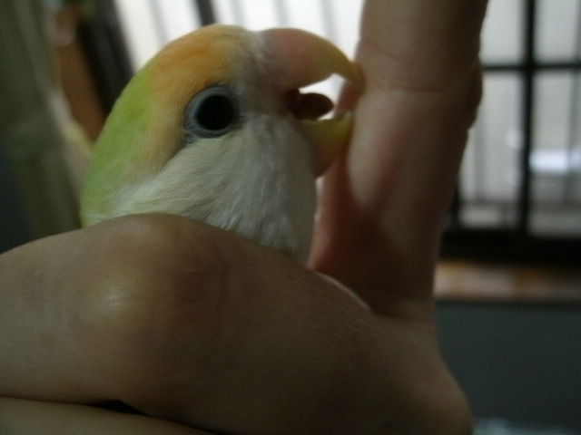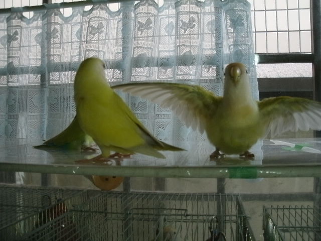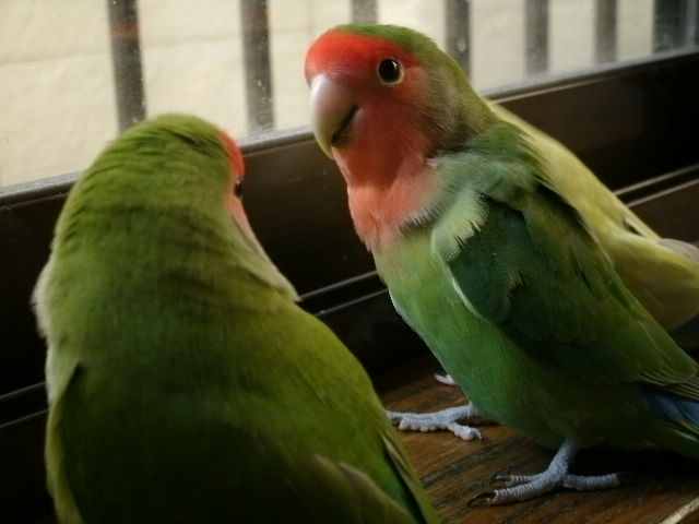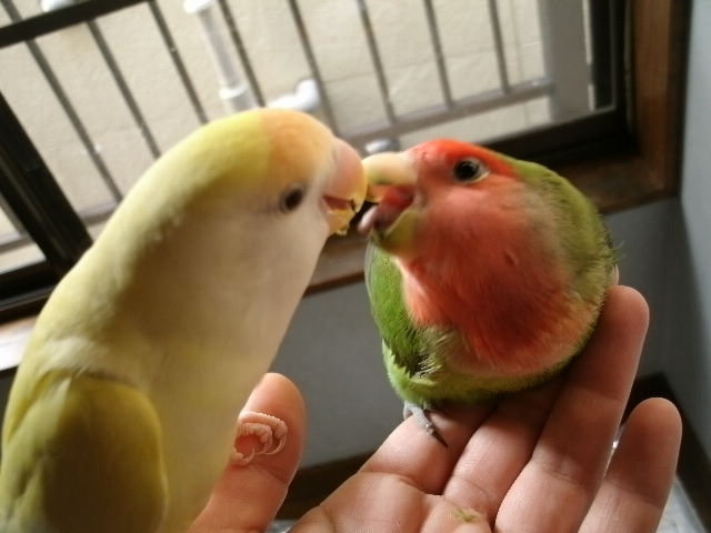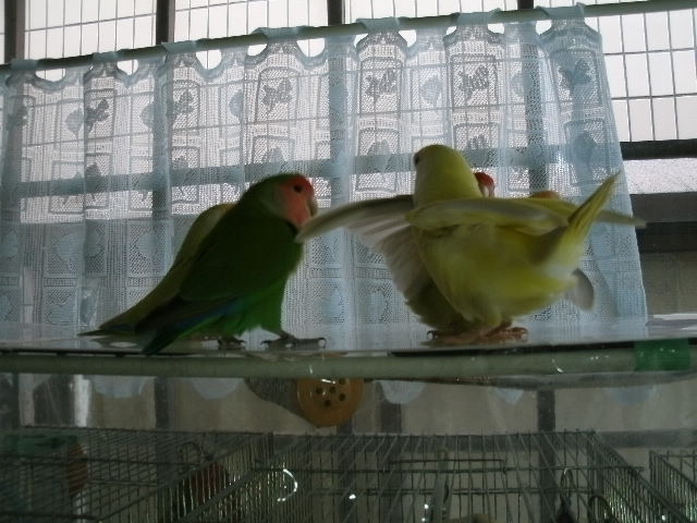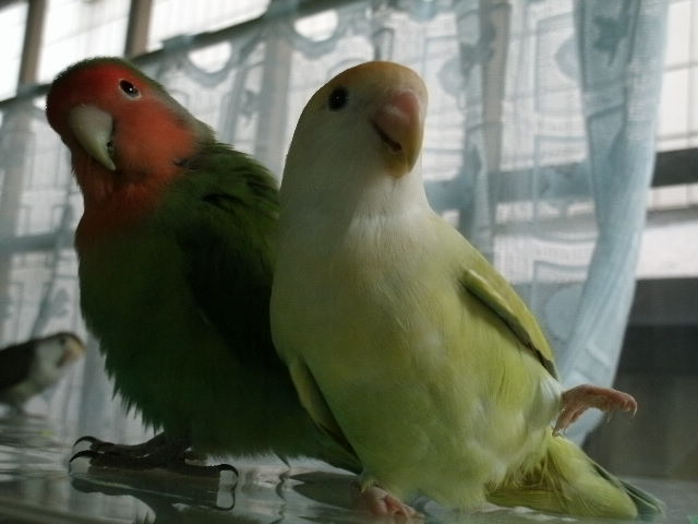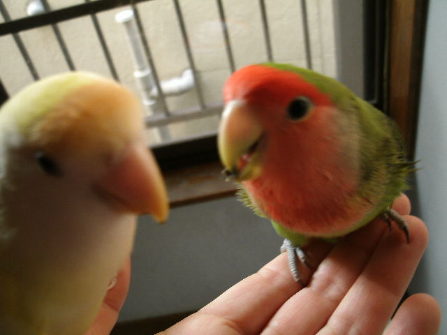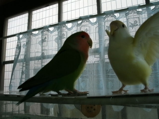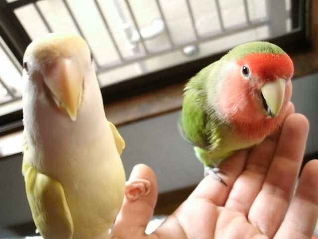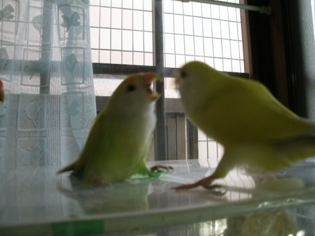 だいたい吹っ掛ける時は年下インコさんから吹っ掛ける事が多いように見えますが、時にはおとなしく弟分らしく振舞う事もある。