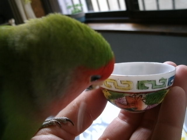 鳥さんたちのご飯いれなんかをキレイにしてやってください!がんばって!!