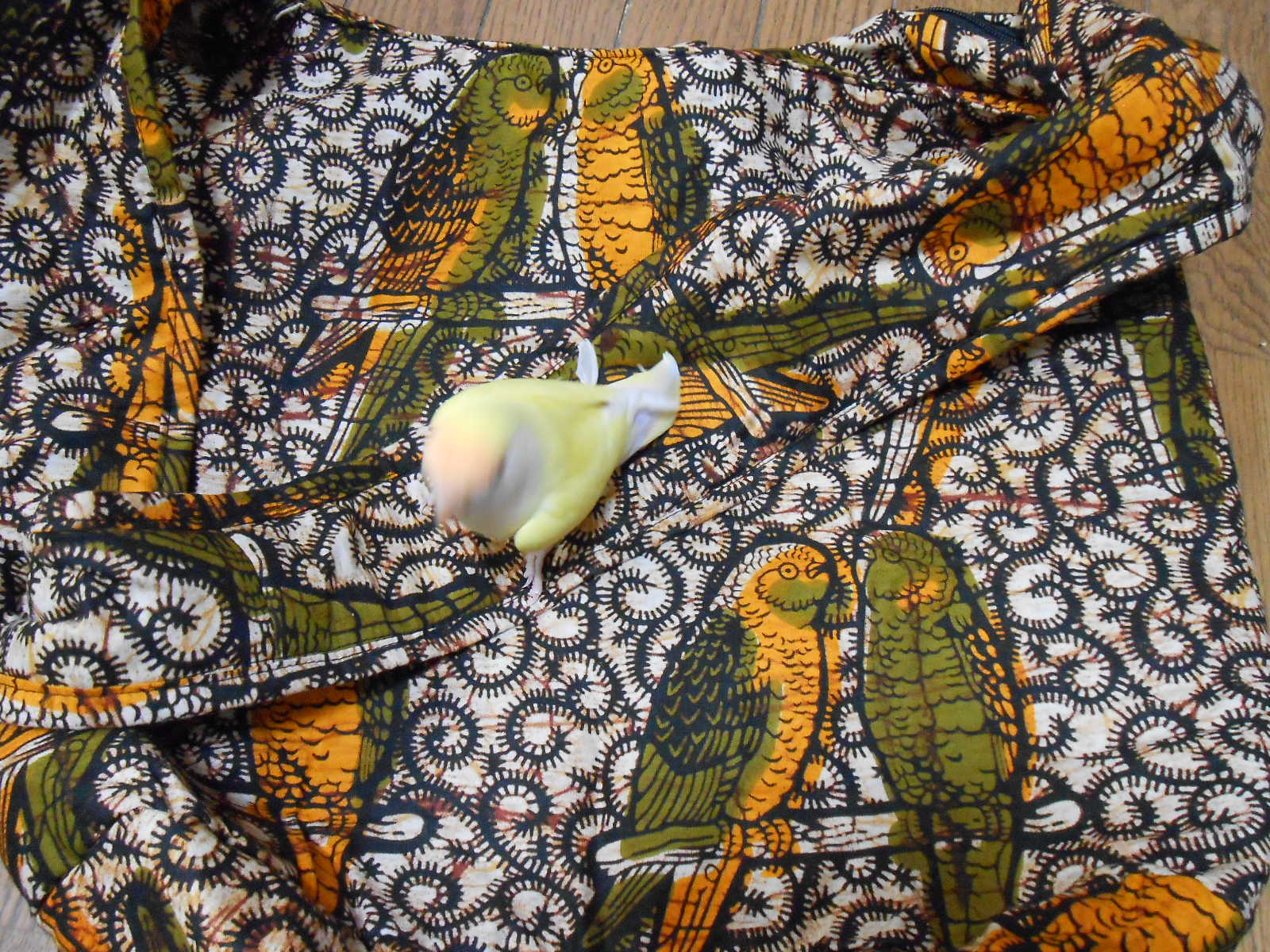アフリカンっぽいオウムプリントかしら?と見てたらミーメさんが、
