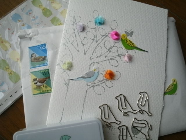 鳥さんクリップとか、ステッカーでアレンジしたカードとか・・・