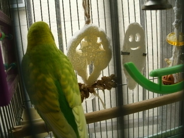 イタズラ好きな鳥さんにこんなハロウィンおやつおもちゃはいかがでしょうかー?