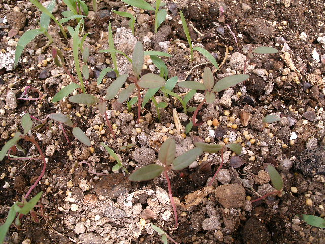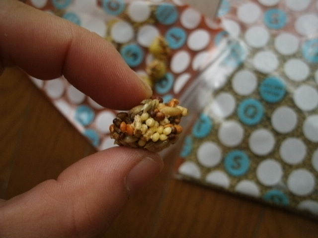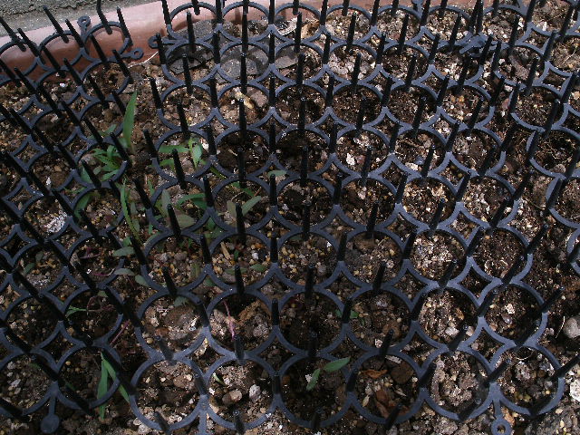 そばの実の他、混合シードも蒔いてみる。・・・正確に申しますと食べ残しとこぼれ落ちたものを集めてゴミ箱へではなく、プランターの上にばら蒔いただけですわね(鳥さんうんちょす肥料入り)。