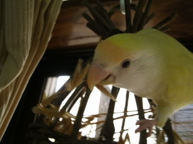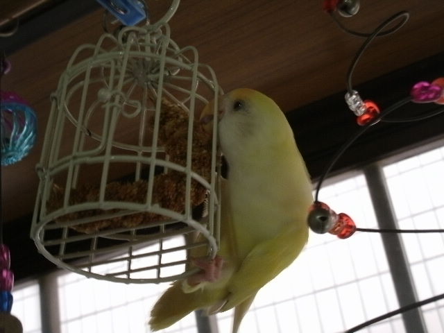 毎日ゴージャスホモのさんがケージにぶら下がっていてはそれが当たり前だと思われてしまうではないかっ(めったに無いことなのに)。