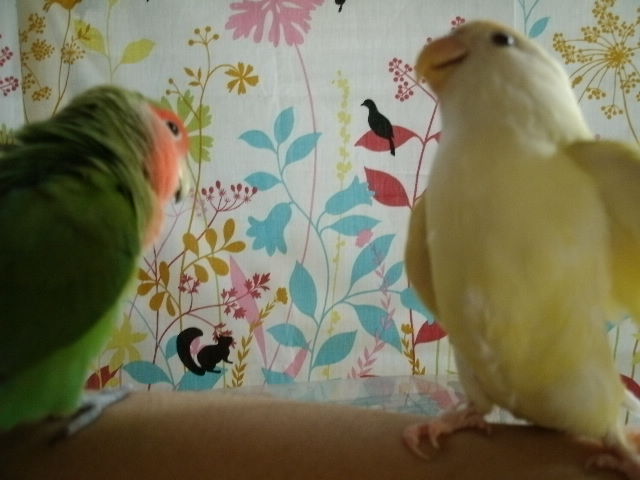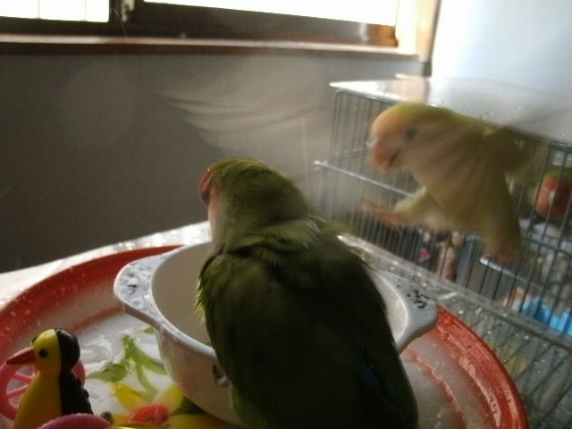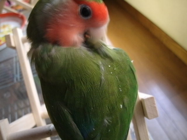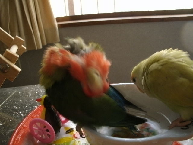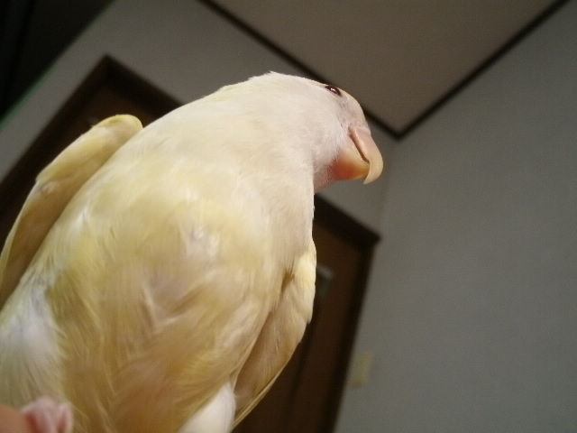 ぴーちゃんなんかケージの中ではお洋服着てますからなおさらかいかいがたまってるんでしょう