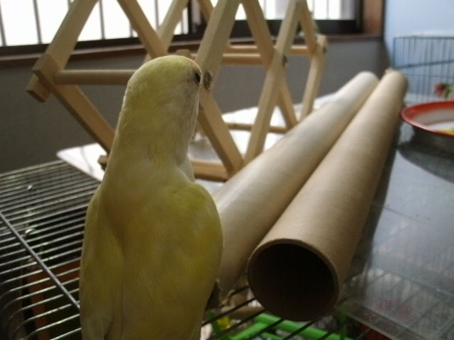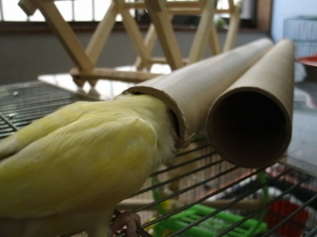 ヤングさんたちが飛び回ってる時にシニアさんたちはあまりケージから出てこないのよねぇ。出てきてもすぐ引っ込んじゃったり。