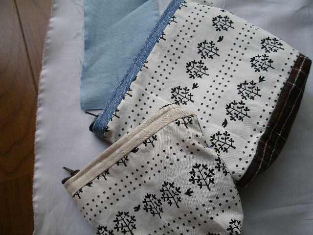 お部屋の掃除とともにとっ散らかってるハギレ布もちょっと整理してみたりして、縫い物ついでにちょっくらポーチなんてものをこしらえてみた。