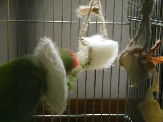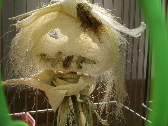 干して乾燥したこれらのピロピロをそのままケージに吊るしてもよいのでしょうが、そこはおばさんですもの ふふ