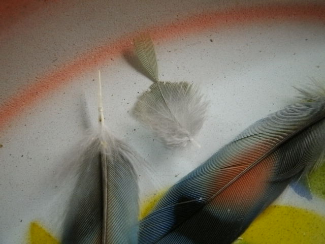 換羽が一段落したと思っていたらまたチラホラと羽が落ちています。