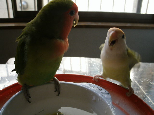 どわーーーーっ (まめVSなっつ)ラブバードさんのお熱いのはいつもの事ですが、この季節の暑さはいっときの暑さでございますからね、のどもと過ぎるまでみなさまがんばりましょう。