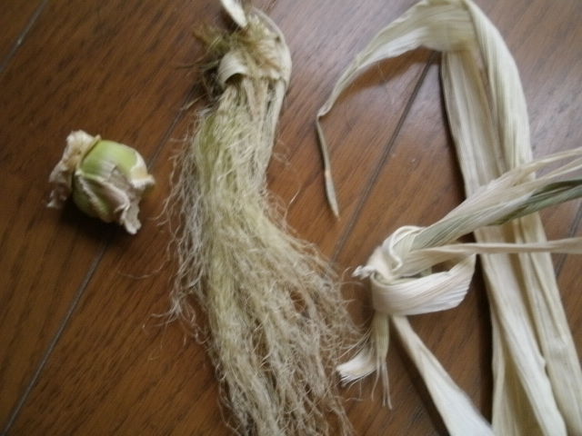 トウモロコシのおヒゲがピロピロして皮もピロピロしてるじゃーーんっ