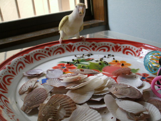 貝殻の乾いた音がカラカラと涼を誘い、鳥さんたちもワーワーキャーキャー・・・のはずだったんだが、だみだこりゃ