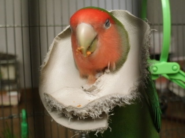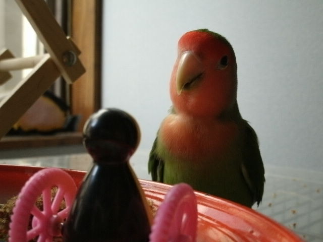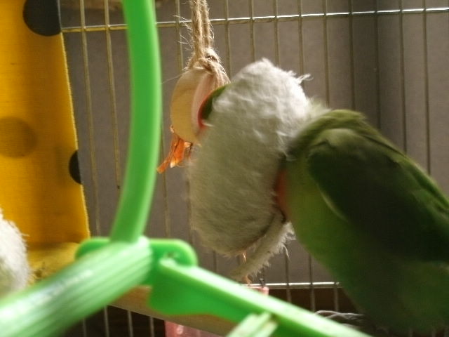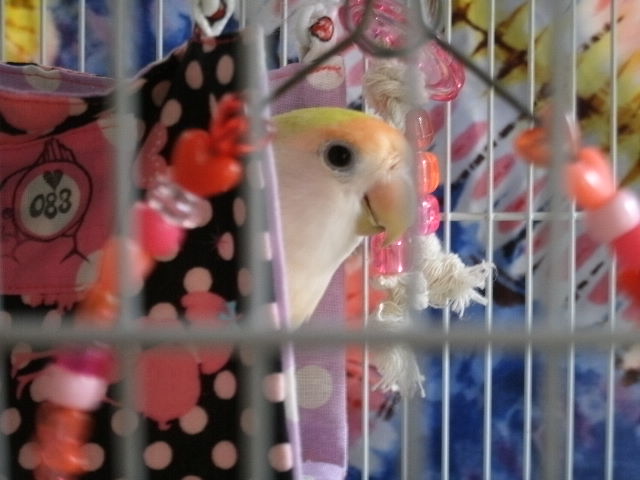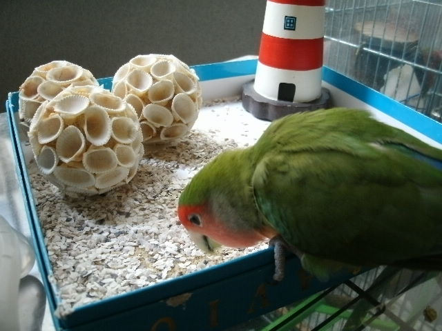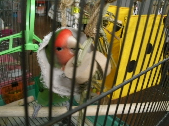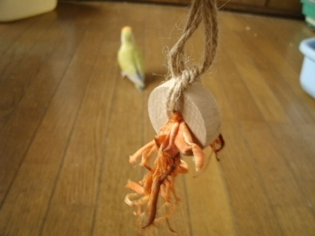 お~い、そこ!無視すんな~~っコレをこっそりぴーちゃんのケージ内にぶら下げまして、イヒヒヒヒッ