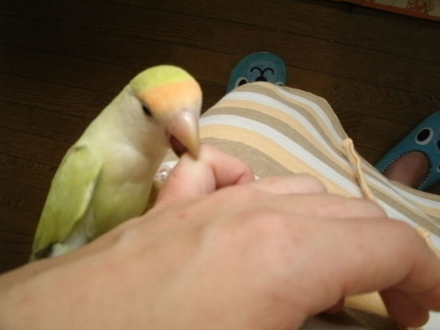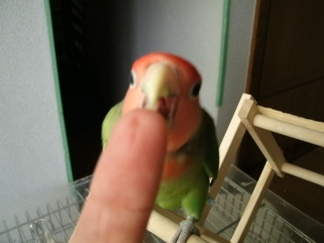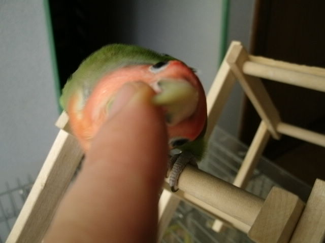 できる事ならぴーちゃんのケージにおばさんの指でもぶら下げて出かけたい・・・と思うくらいだわよー。