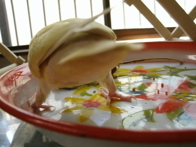ちょいジメっとの日なんかは鳥さんはよくお風呂に入ったりするんですが