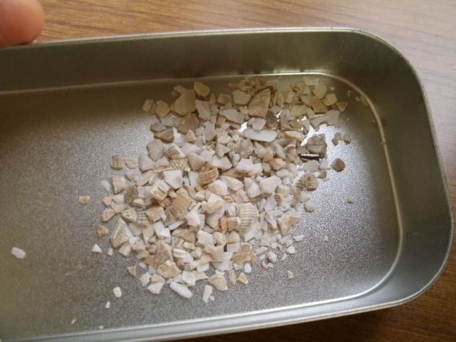 ちょっとそこまでスーパーでベビーホタテを買って味噌汁の具にしたもんだから、その貝殻で貝塚を作ろうと・・・したんだけど、ちょっとしたおもちゃにしました