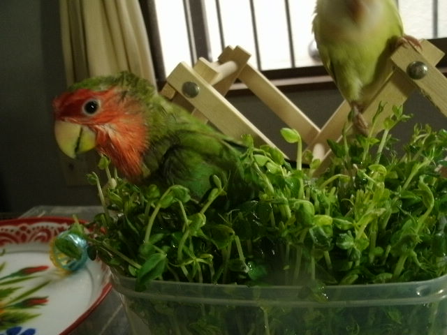 水浴びるより豆苗浴びるほうが楽しくなっちゃったらしいげんちゃんが豆苗をボッキボキに倒して困ります