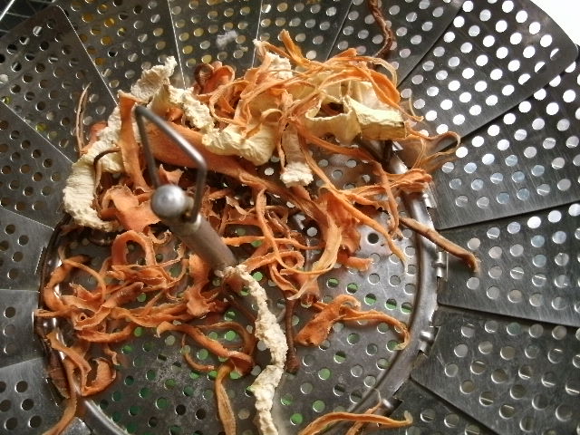 にんじんを皮むき器でなるべく長~く縦に剥いて、ついでに大根の皮も干しといた、にんじんピロピロ感でてるじゃ~~んっ ピロピロ~♪