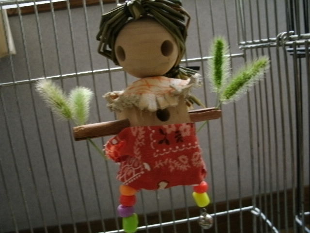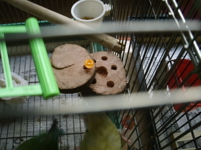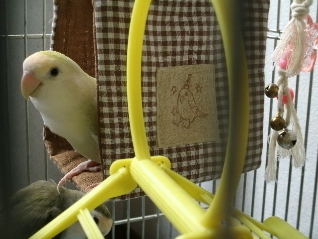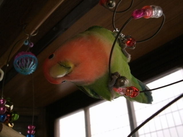 まぁ決め付けるのも範囲を狭くしてしまうので、今日は久しぶりに登場のぶら下げおもちゃをぴーちゃんの話し相手に置いてきてみた