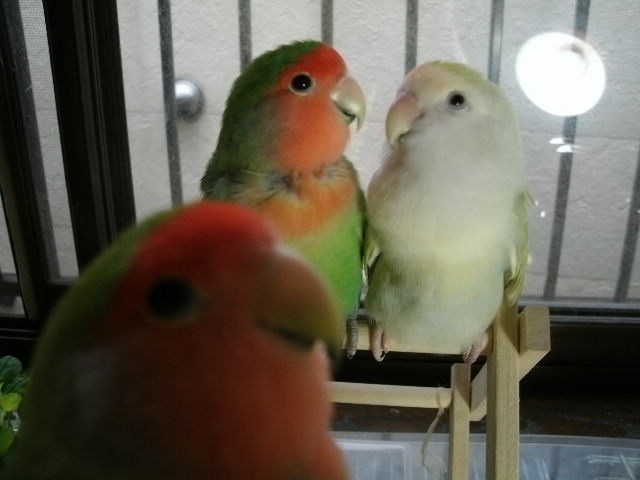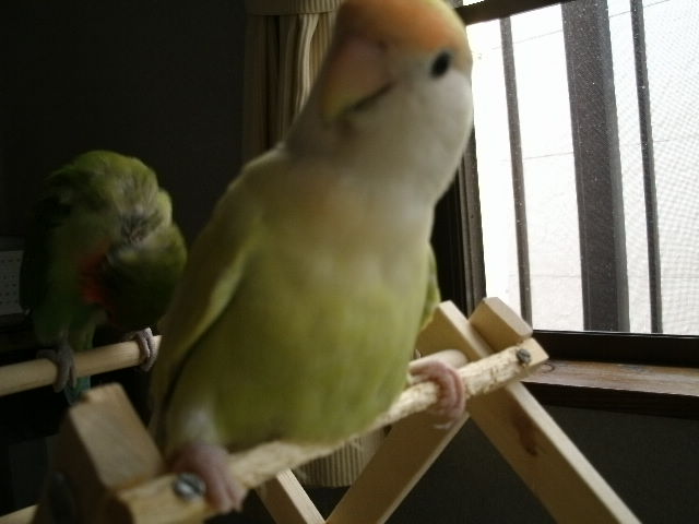 さっそくなっちゃんの鼻フック入ってますよ~、つられてぴーちゃんも遊んでるようで・・・