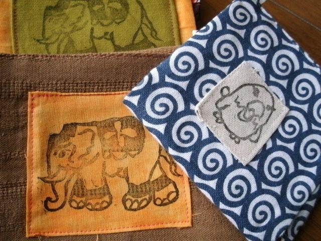 おばさんにたくさんの差し入れを送ってくださるほか、スゲーかわいいスタンプを作ってくださるkaoryさんのかわいいスタンプをちょいとテントに縫い付けますと(kaoryさんがおばさんのヘナチョコ消しゴムスタンプを‘味がある’とか‘テントに使ってみても~’とコメってくださったので)いつものテントが一味違う!