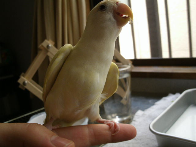 ケージ内のおもちゃにあまり興味もなく、ケージ外では遊ぶよりまず自分キレイ優先のおしゃれさん