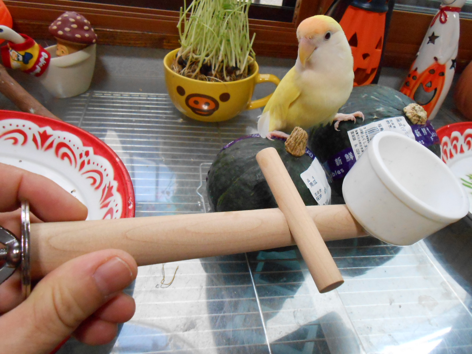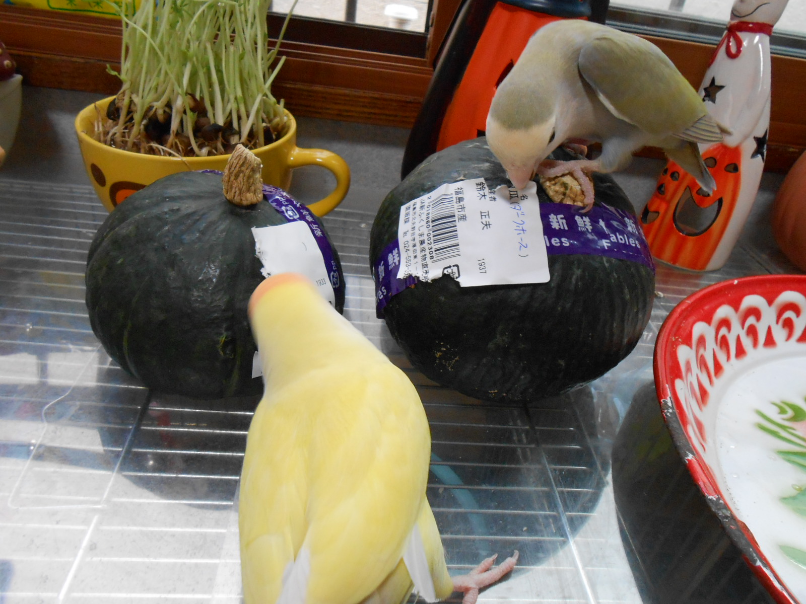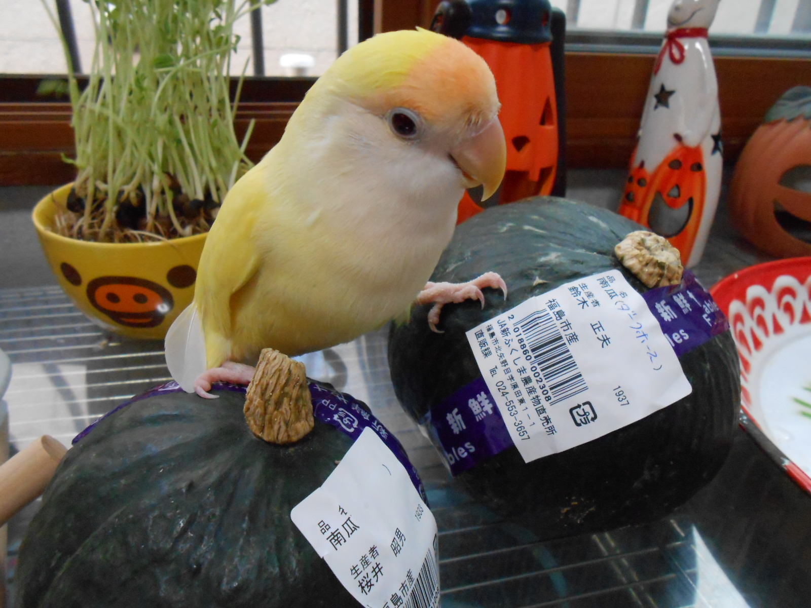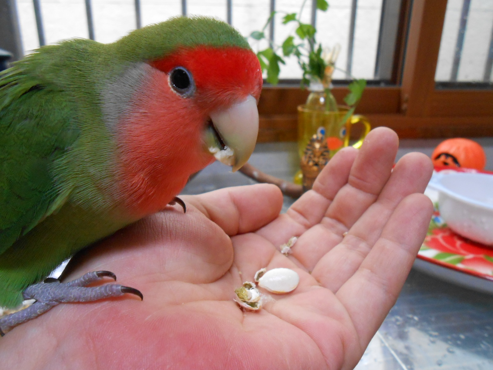 カボチャの種にはいろいろと栄養が含まれてるそうですが、カロリーが高いので鳥さんにはあげすぎ注意!でね